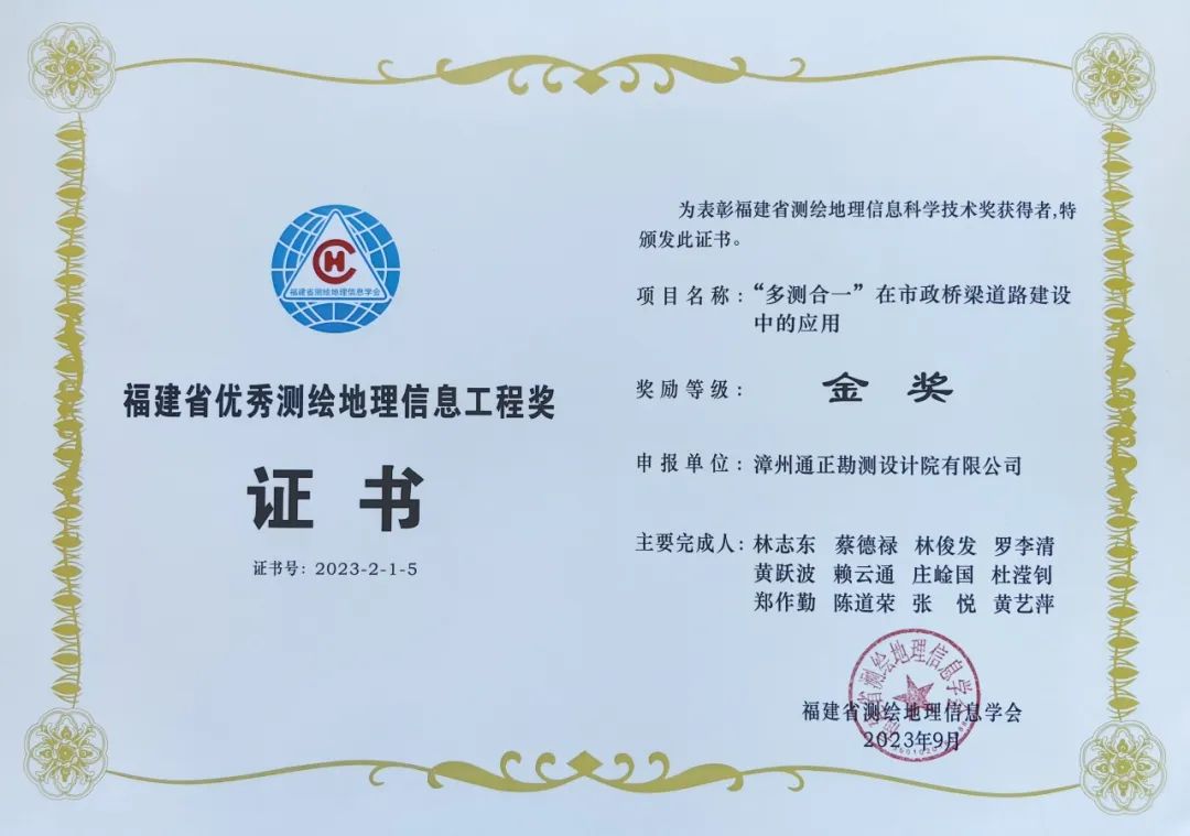 此次獲獎(jiǎng),是福建省測(cè)繪地理信息主管部門對(duì)通正公司測(cè)繪地理信息工作的充分肯定,也為“多測(cè)合一〞在市政工程建設(shè)領(lǐng)域中的應(yīng)用與推廣提供了借鑒經(jīng)驗(yàn)。