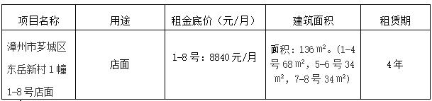 漳州市東岳新村1幢1-8號店面承租人。現(xiàn)將具體事項公告如下:一、租賃標的物(標的物以現(xiàn)狀為準):