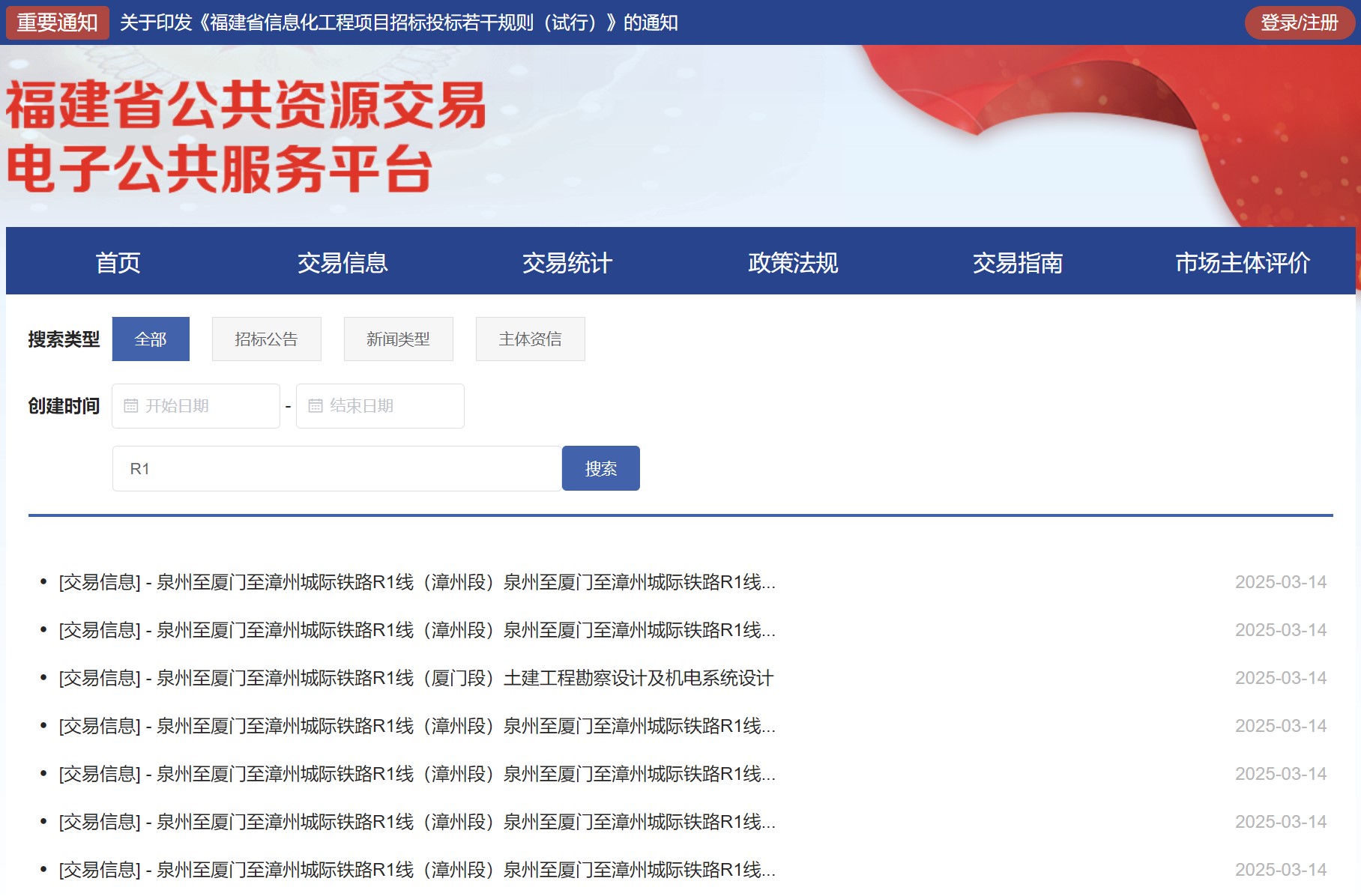 作為R1線項(xiàng)目漳州段業(yè)主單位的漳州市鐵路投資開發(fā)有限公司,將嚴(yán)格落實(shí)公開透明招投標(biāo)程序,確保項(xiàng)目高效推進(jìn)。同時(shí),招標(biāo)公告同步在“福建省公共資源交易電子公共服務(wù)平臺(tái)”和“漳州市工程項(xiàng)目交易中心”發(fā)布,公眾可通過該平臺(tái)查詢?cè)敿?xì)信息。